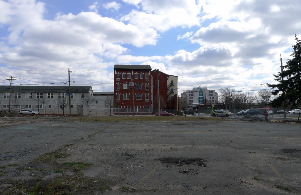 The existing site (pre-garden), across the street from the pickup-dropoff entrance of the school