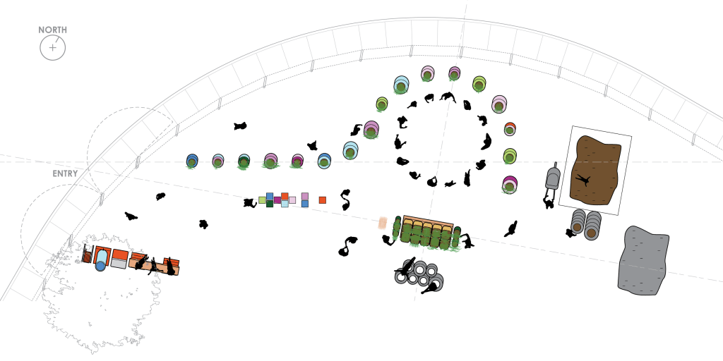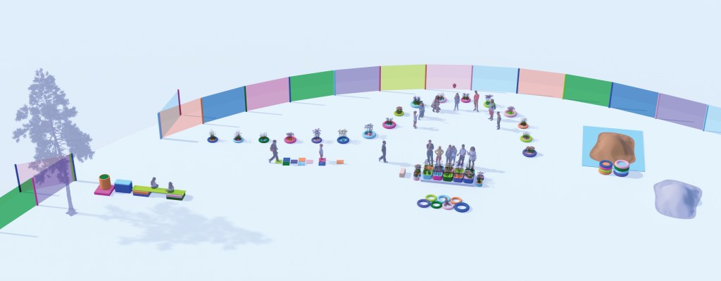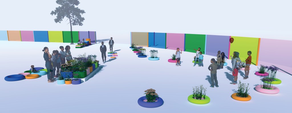 The temporary garden, built on a vacant concrete lot of the school’s front grounds, was composed of the following elements: