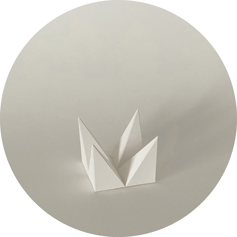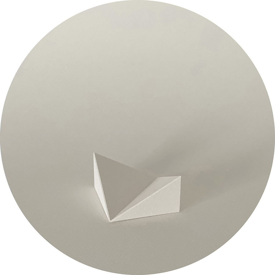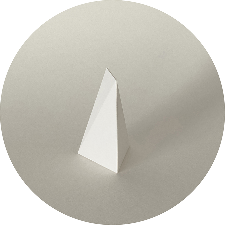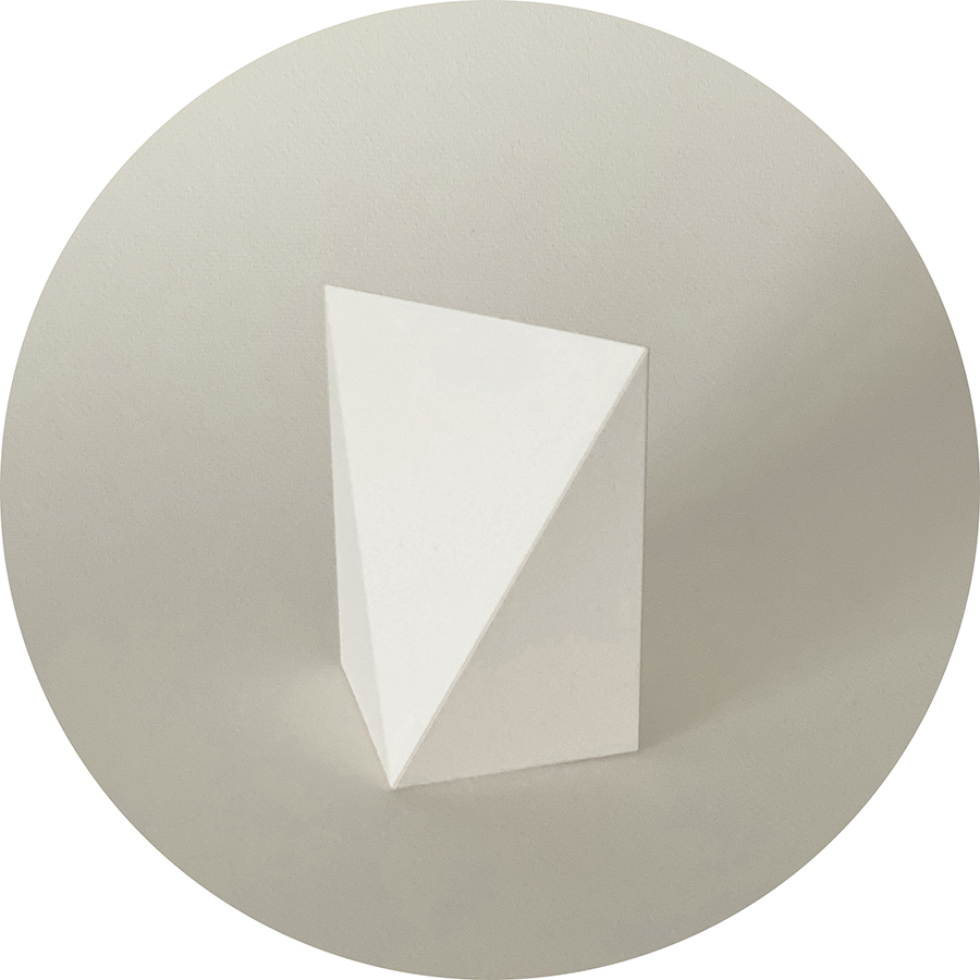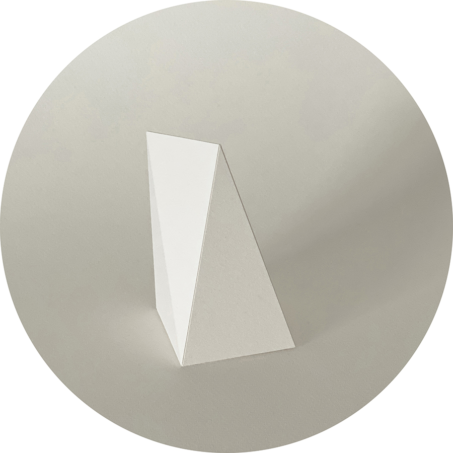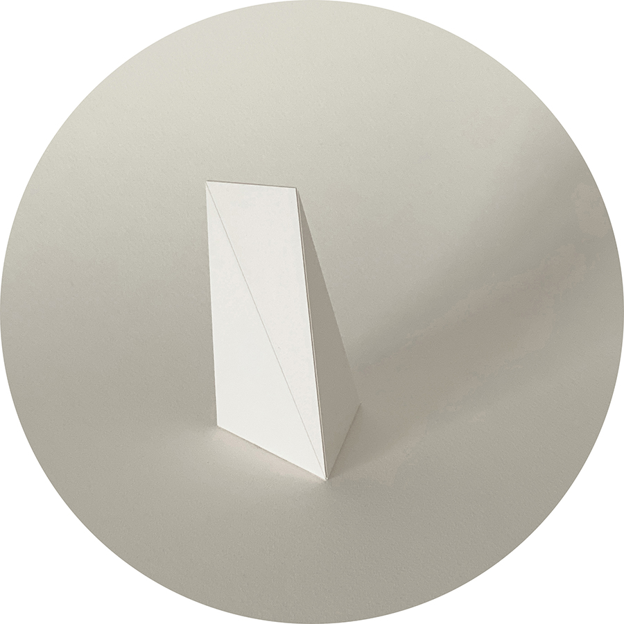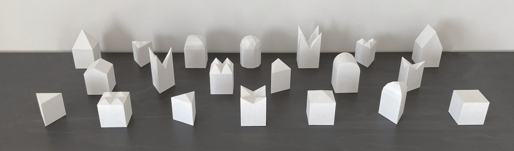 This morphological series of Euclidean forms is constructed from developable surfaces of hand cut, scored, and folded paper. These models have two basic components, “bodies” and “heads”: (1) “bodies” are shape-solids with extruded bases of (primarily) equilateral triangles and squares, and (2) “heads” are formal caps consisting of (primarily) 30-60-90-degree sloped facets.
