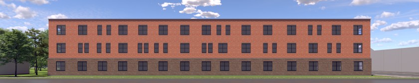 Targeting a scant construction budget of less than $125 per square foot (in pre-2020s-inflation dollars), the building is erected using wood frame platform construction with concrete masonry elevator pit and stairwells (highlighted in grey above).