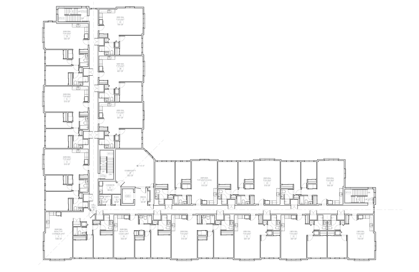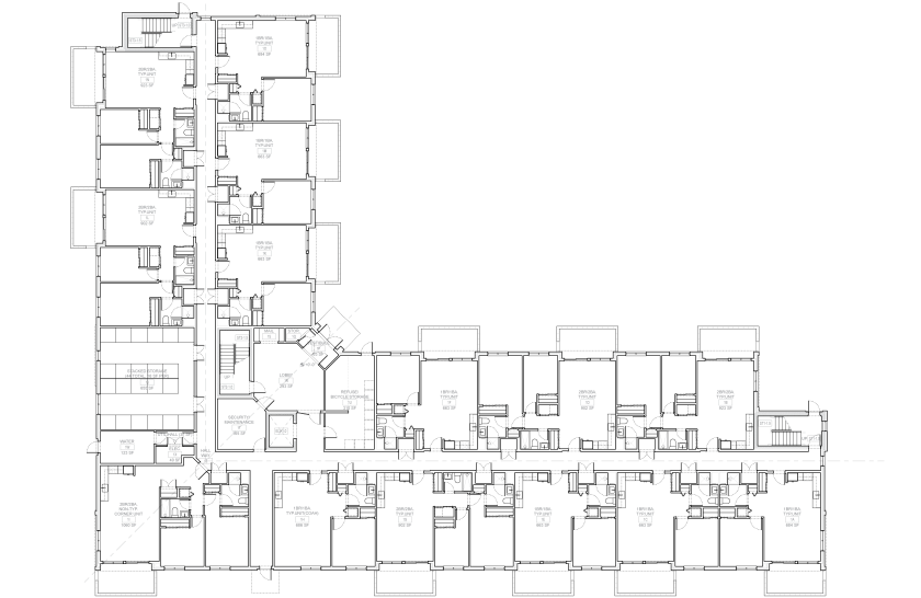 Negotiating the aforementioned requirements of the client, the financier, the township, and its residents, the apartment units are modest in size but carefully planned, with an emphasis on material and spatial sensitivity, clean construction, and above all, meaningful habitation for the occupant — our foremost constituent. The apartments consist of one-bed/one-bath, two-bed/two-bath, and three-bedroom/two-bathroom units, with a washer-dryer closet in every unit.