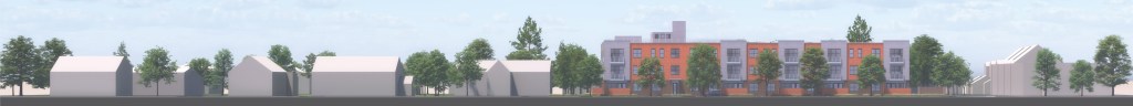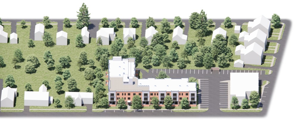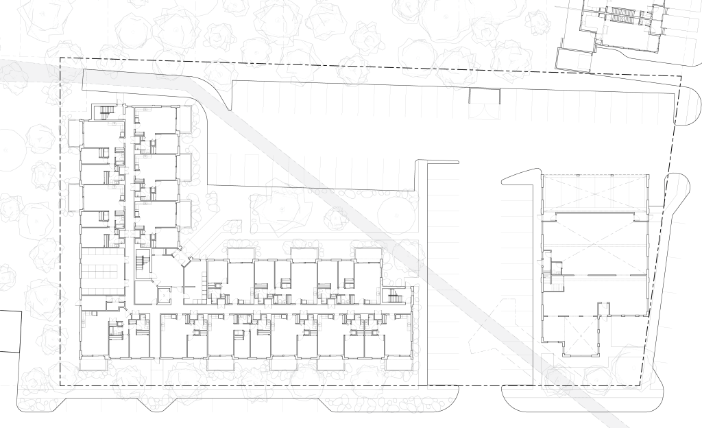 After receiving approval from the township’s Historic Preservation Commission, this project was paused by the client due to the global events of 2020. The project was intended to be one of the few — if not the first — multi-unit residential developments in a town crowded with single-family dwellings. The 44-unit building would have 69 bedrooms to comfortably house more than 115 people, on a site that might otherwise be zoned for four single-family residences that would house — accounting generously — twenty total people. This would’ve been an almost six-fold increase in the housing capacity of the site, and within a borough with a population of 1,918 per the 2020 US Census data, this project could generate an almost 6 percent population increase.