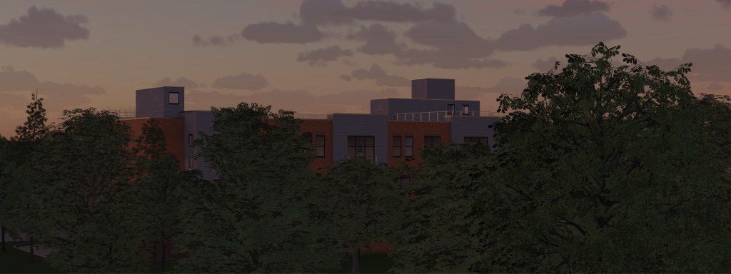 Perspective Rendering [West Elevation, Mid-summer sunset]