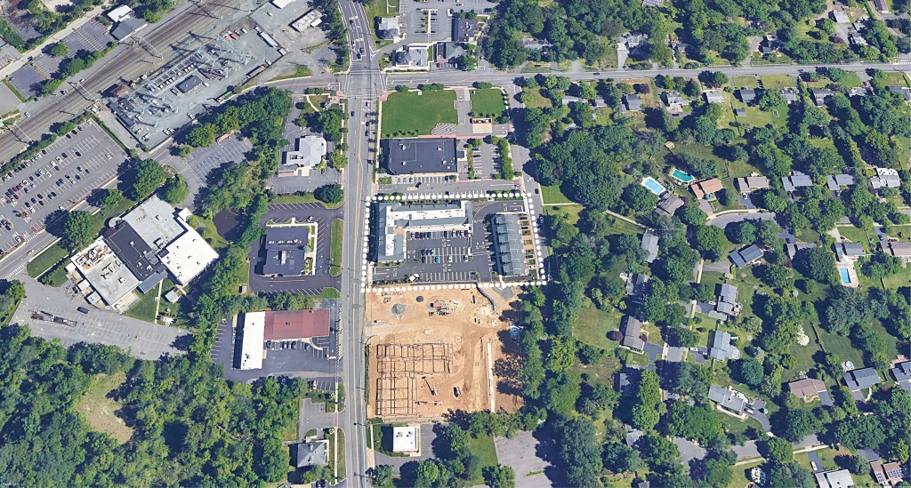 A private client’s mixed-use complex near the Princeton Junction Train Station in New Jersey. Sited within a township redevelopment zone, this project consists of six conjoined two-and-one-half-story rowhouses for sale, and a two-story building containing 17 apartments above a 12,000 square-foot ground floor of commercial space for rent.